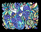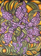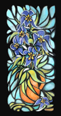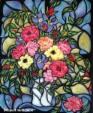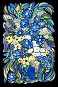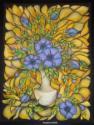 Porcelaine Sous bois Lilas mauves Petit bouquet au vase bleu